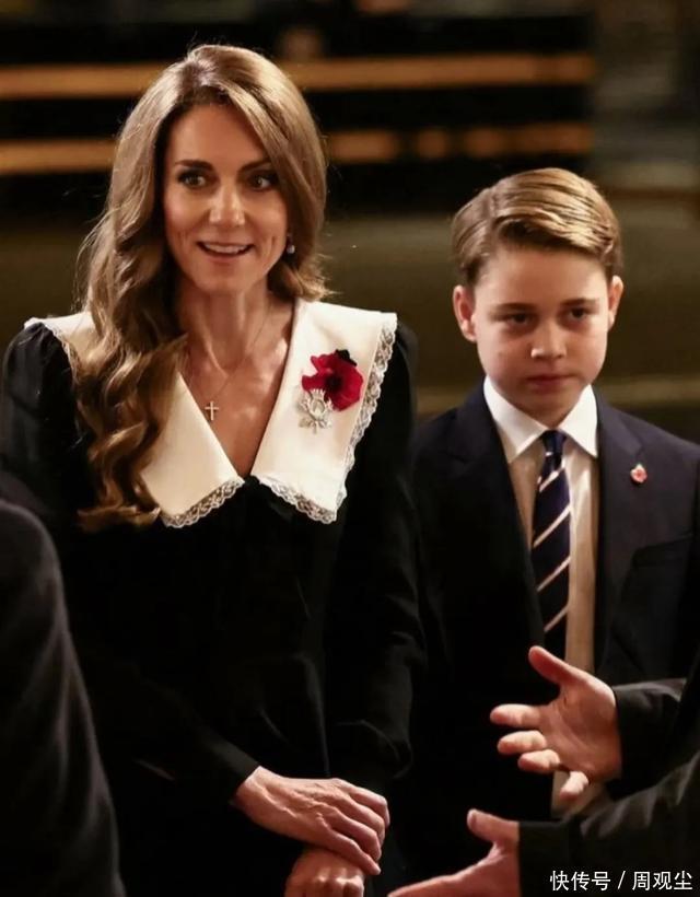 那个爱哭的小屁孩,已经长成了准国王 还记得2013年吗? 全世界的记者扛着长枪短炮堵在圣玛丽医院门口,就为了看一眼这个刚出生的小王子。 那时候凯特31岁,抱着襁褓中的乔治走出医院,谁也没想到,这个皱巴巴的小婴儿,未来会成为英国的国王。 8个月大的时候,小乔治就跟着爸妈出访澳新了。 坐在凯特怀里,一脸“别碰我”的嫌弃表情,却意外走红全球,成了尿布外交的代言人。 那时候的他,就是个普通的熊孩子——会在妹妹夏洛特的洗礼仪式上被妈妈训哭,转头就往爸爸怀里钻。 可现在呢? 站在音乐厅里的这个12岁少年,穿着笔挺的黑色西装,系着标志性的条纹领带,身高已经接近1米7,快要赶上踩着10.5厘米高跟鞋的妈妈了。 他安静地跟在凯特身后,该握手时握手,该寒暄时寒暄,举手投足间全是沉稳。 那种气场,完全不像一个12岁的孩子,倒像是已经演练过无数次的成熟王储。 凯特的狠劲,都藏在这份温柔里 很多人不明白,凯特到底怎么把乔治教成这样的? 她没有把儿子关在白金汉宫里接受精英教育,而是让他去普通私校上学,和其他孩子一起挤校车、做作业。 她坚持亲自接送孩子,就算被拍到素颜出门也无所谓,就是要让乔治知道——你是王子,但你首先是个普通人。 但凯特心里明镜似的:这孩子注定不普通。 所以她一边给他营造正常童年,一边一点点地让他知道,“你将要承担什么”,而不是突然有一天告诉他“你必须承受什么”。 这次参加纪念音乐会,就是最好的例子。 凯特没有全程紧盯着儿子,像个人机妈妈一样随时纠正他的言行。 她只是走在前面,让乔治自己观察、自己应对。 但你又能看出来,她时刻留意着儿子的状态,随时准备在他需要的时候伸出手。 这才是真正的教育智慧——既放手,又托底。 当晚的凯特也是美到发光。 那条带着白色蕾丝大翻领的黑色套裙,复古又优雅,配上金棕色的大波浪卷发,在灯光下闪闪发亮。 说实话,经历了2024年那场癌症的折磨,很多人都担心她会憔悴,会垮掉。 结果呢? 她不但挺过来了,反而像脱胎换骨一样,气质越来越像当年的戴安娜王妃——那种柔软却强韧的力量。